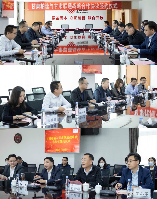 2022年4月26日,柏隆科技与中国联通甘肃分公司战略合作协议签约仪式在甘肃省兰州市举行。柏隆科技总经理魏柏龙,副总经理方天娇,中国联通甘肃分公司党委书记、总经理孙全、副总经理王新强,出席仪式,双方公司相关部门负责人参加仪式。